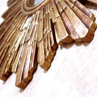 La profondeur de sa matière aux allures baroques en fait un petit miroir admirable. Les rayons dorés légèrement mis en relief permettent de sublimer un mur tout en restant bien discret et l'impression d'être collés au cadre rond du miroir.